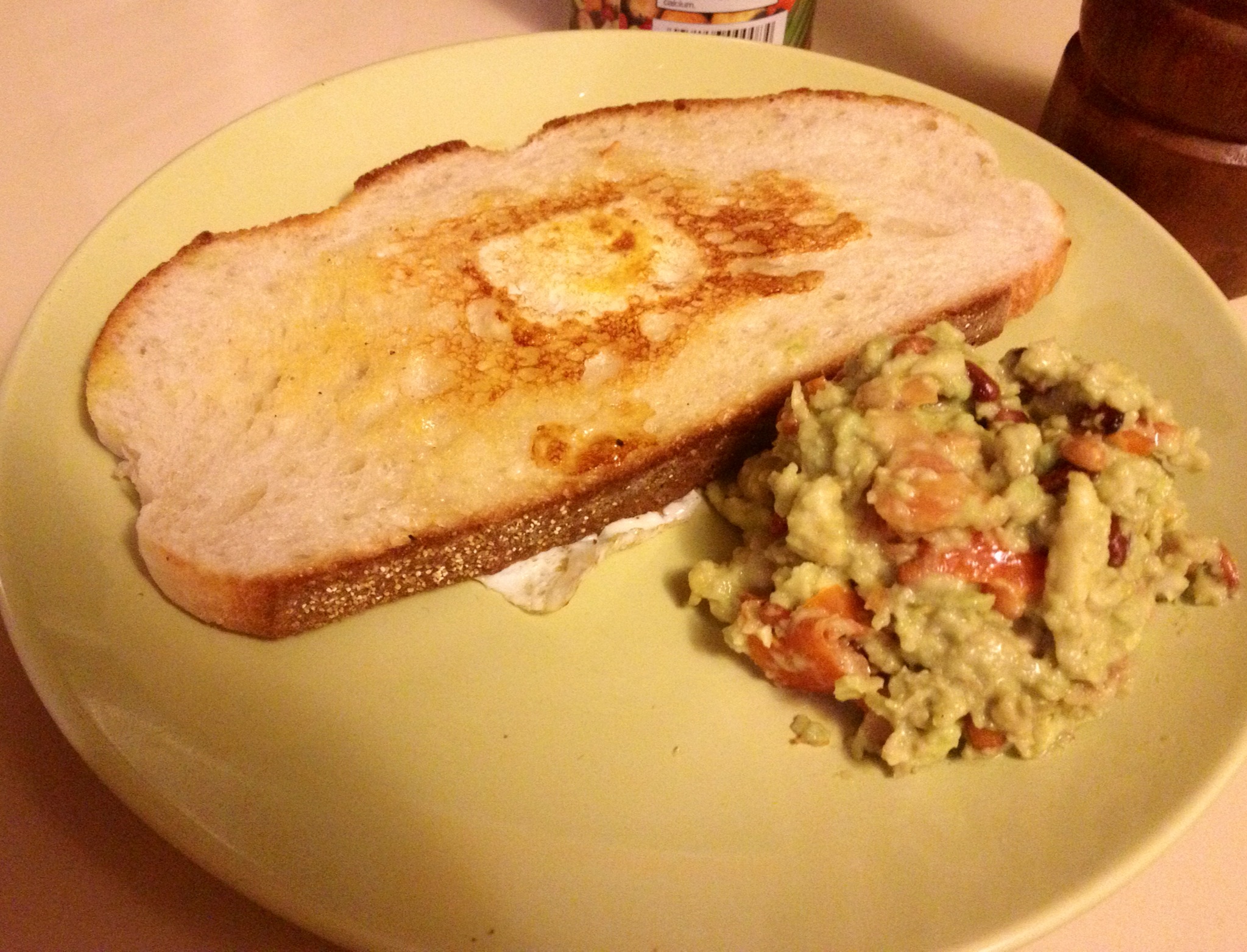 Crack an egg over the hole and wait for a bit white it cooks